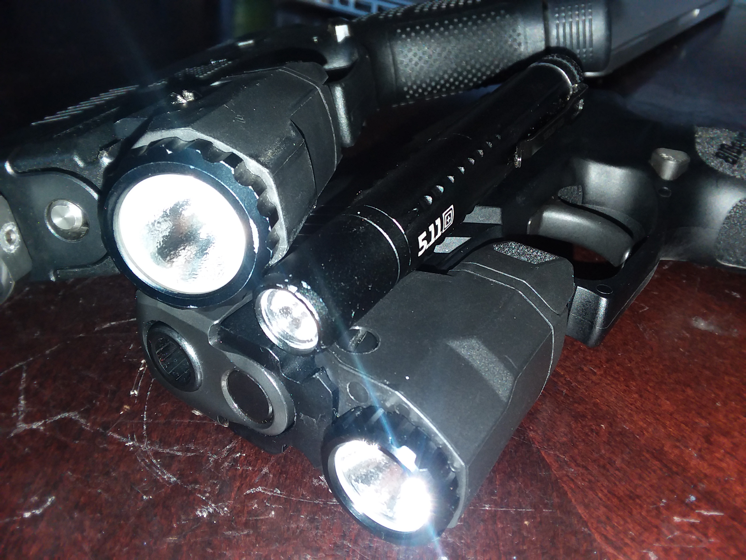 Handheld lights are excellent because they are versatile and above all can be used without having to pull out a gun — as opposed to weapon mounted lights — something imperative to not breaking the law. A handheld light can still be used (although not as effectively) in conjunction with a firearm too. They can also be used to blind an attacker momentarily or as an impact weapon. Handheld lights come in a variety of shapes and sizes. I prefer ones that are pen shaped/sized because they are small and barely take up space in my pocket. Standard sized flashlights like the Surefire G2X and 6P variants are excellent choices but tend to take up a bit more space, many people like to run lights this size on designated belt holsters.